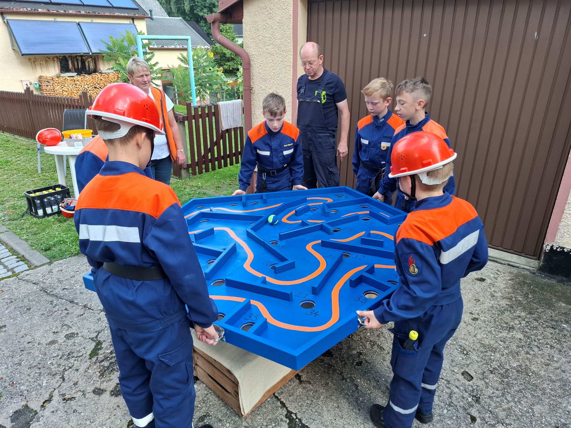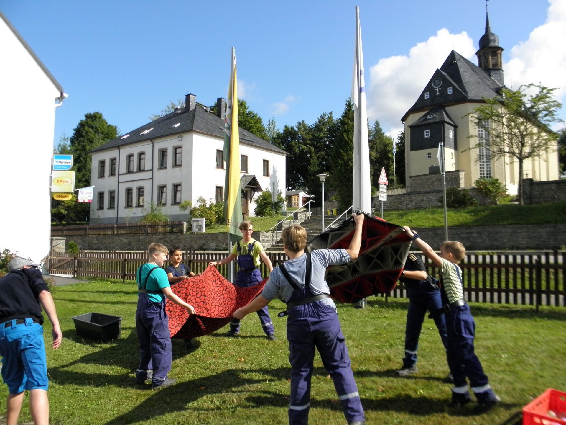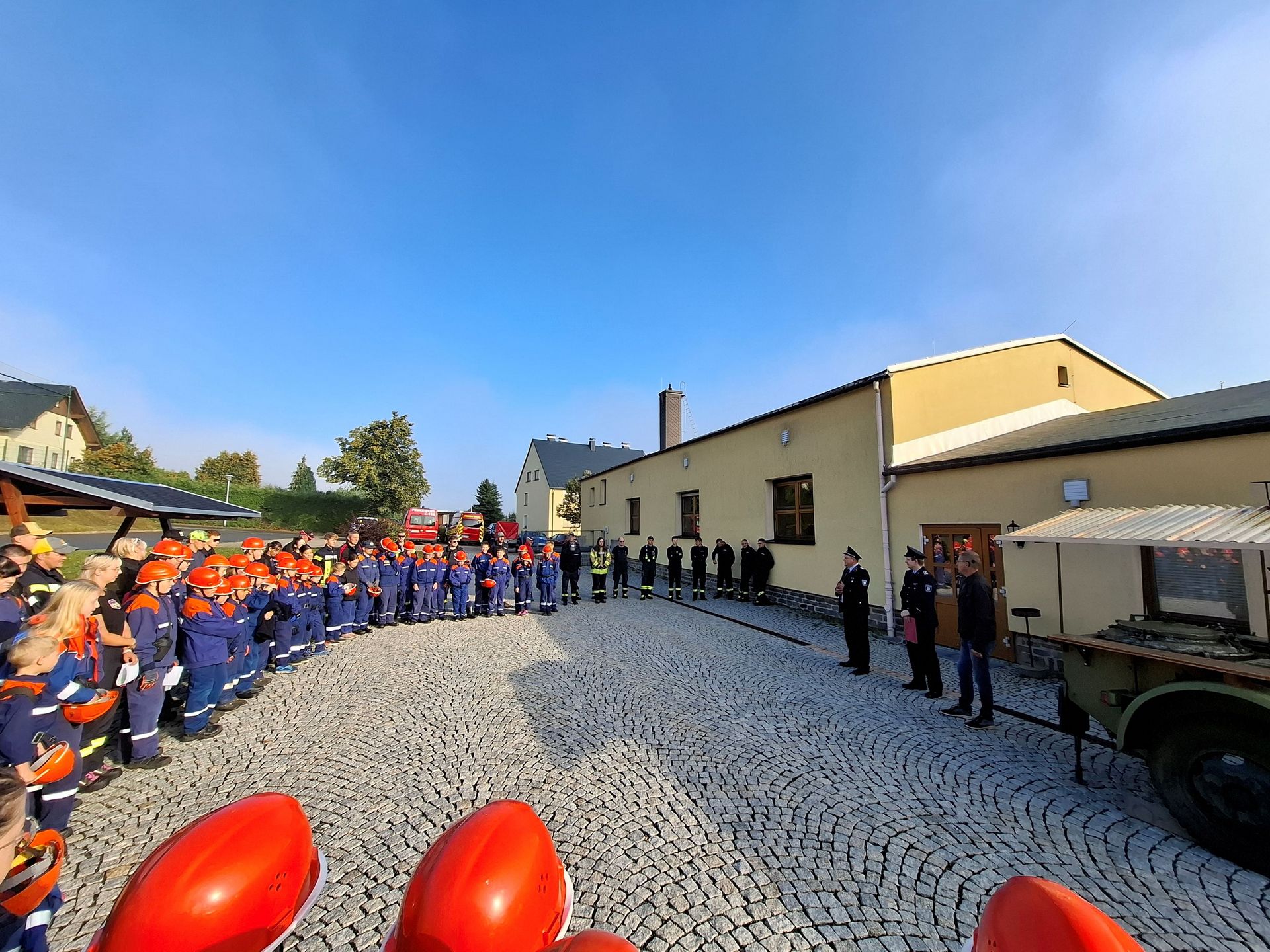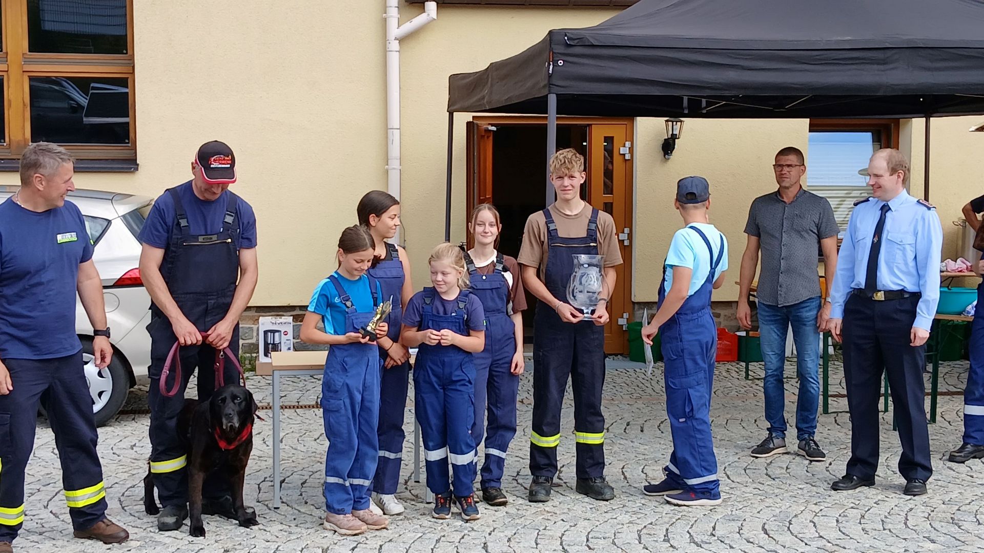 den Mitgliedern der Jugendfeuerwehr aus Reitzenhain vor Königswalde und